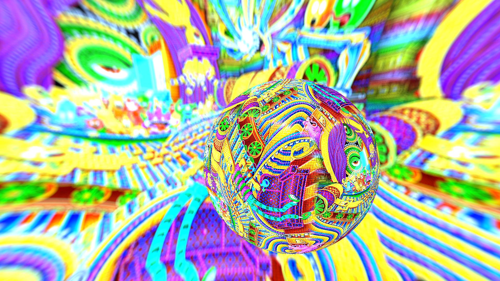 This cool pixel shader features a sphere, painted with "groovy sauce" (from the Groovy Gravy shader), flying through space, by default. However, the sphere and the background are customizable. There are multiple backgrounds and textures built in, or you can use your own images or videos. I've included a couple of surprises too. Have fun!